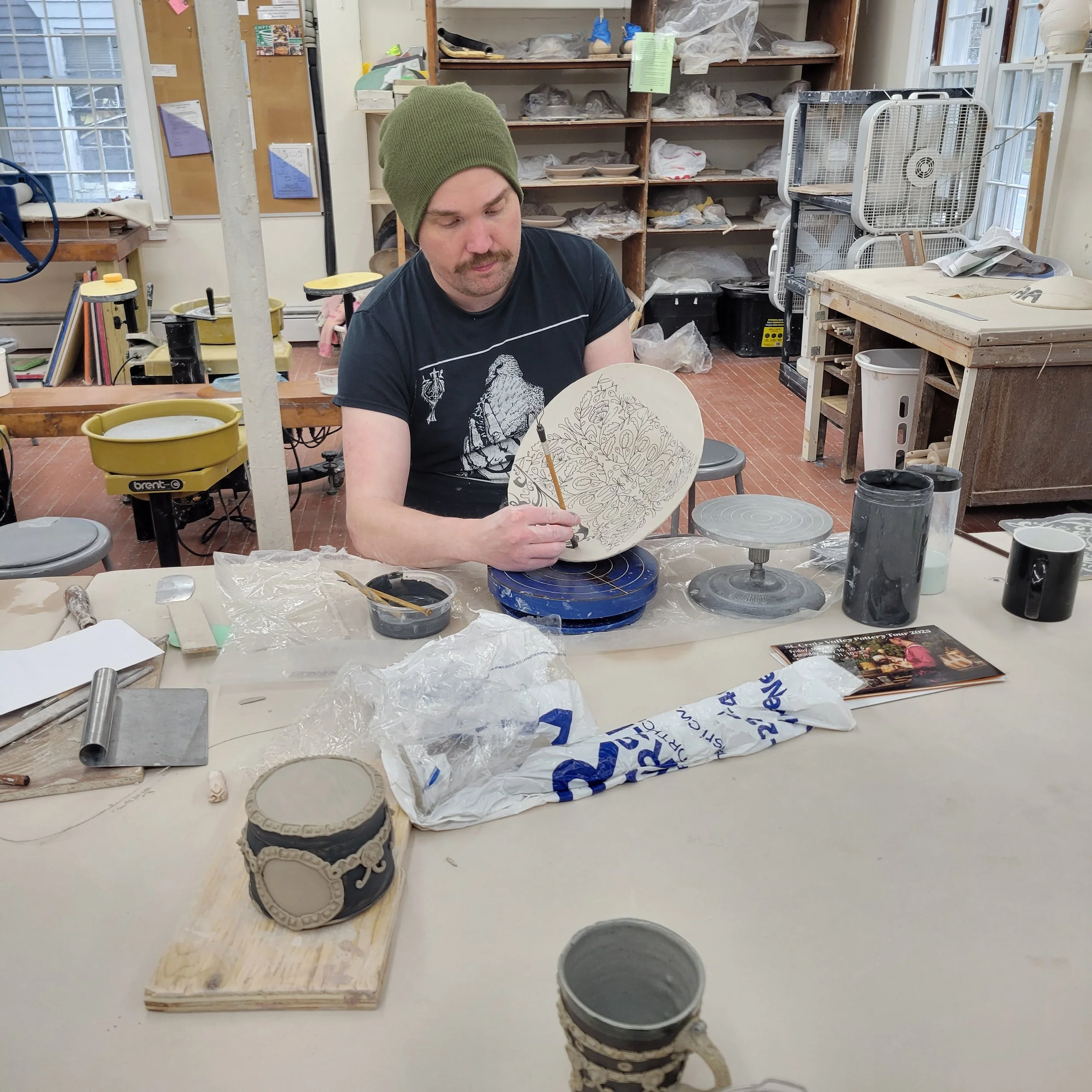 Studio access 20 hrs/week, cubby, 24+ glazes & clays, electric & gas kilns, optional wood & raku firings, prerequisite: 1 SCAA 8-week pottery class.
