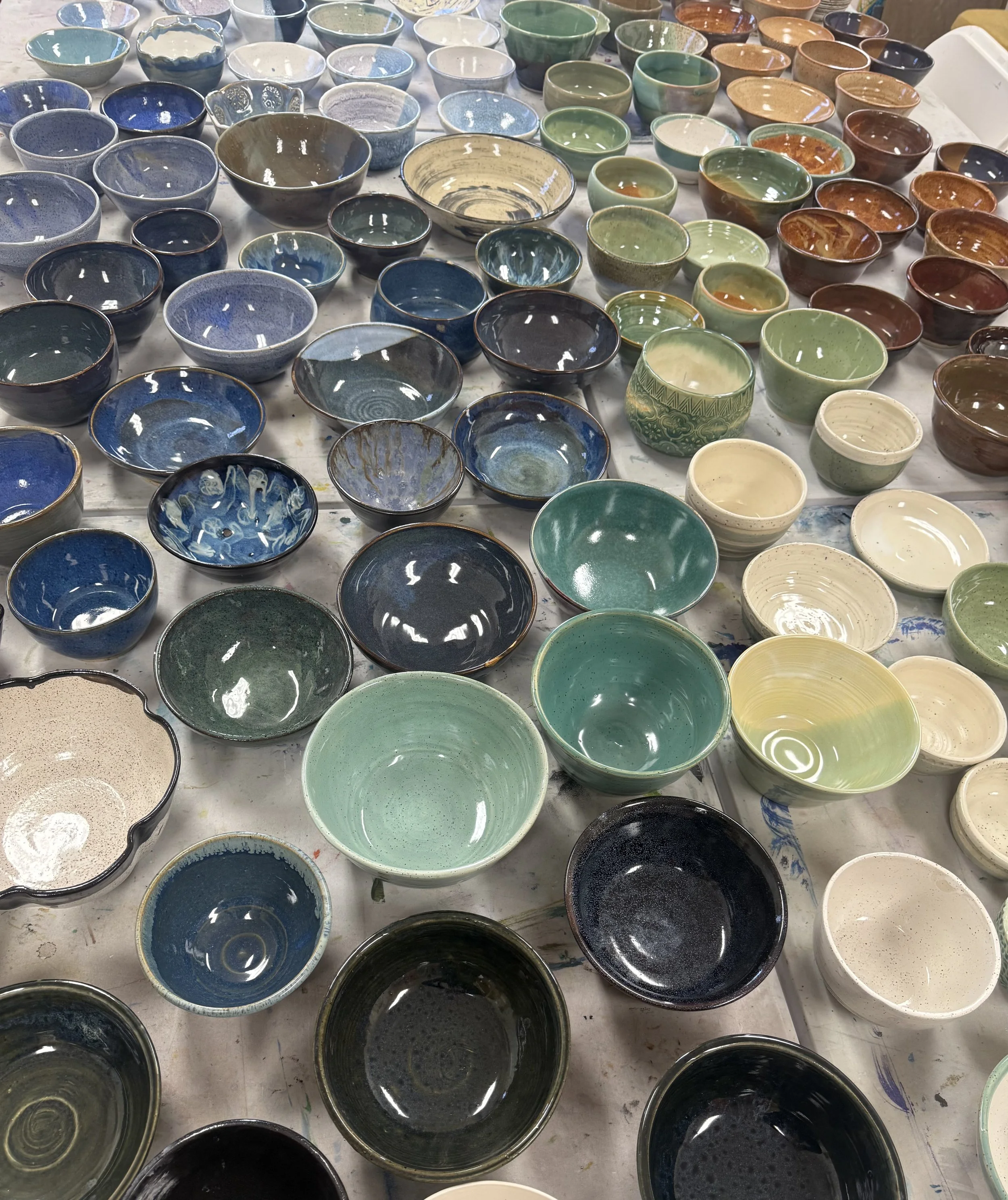 Artists from the South County Art Association came together to create and donate 132 handmade bowls for this year’s Empty Bowls fundraiser supporting the Rhode Island Community Food Bank. Each bowl was individually crafted and stamped with the artist’s potter’s mark before being packed and delivered for the event.