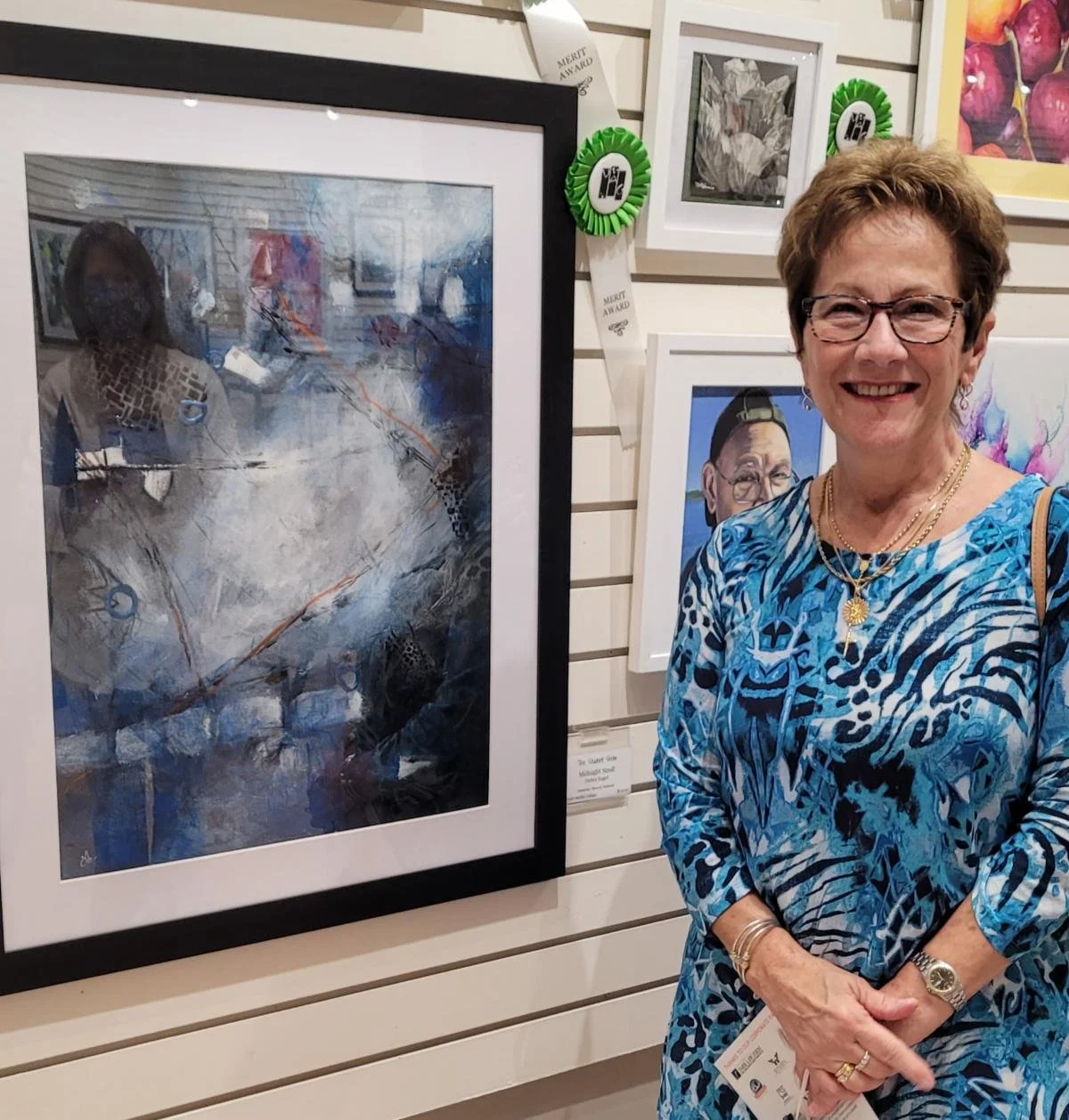 Debbie Engel is a mixed media abstract artist who joined SCAA in 2020. She exhibits regularly here, and won the Lorenzo & Elizabeth Kinney award for Best Floral in 2021 as well as the Merit award at the Visual Arts Center in Punta Gorda in 2021, her second home. She was also a featured artist in one of our Member's Invitational exhibits in 2022. Debbie taught Visual Arts at Chariho Regional School District for 30 years where she was awarded Chariho Teacher of the year for 1990-1991 and Charlestown Elementary School teacher the year for 2006-2007. She also received the RI State of the Arts Award in 1992 and Rhode Island Elementary Art Teacher of the year in 2006-2007. Following her retirement, she now teaches Monoprintmaking techniques at here at SCAA in the summertime. - SCAA