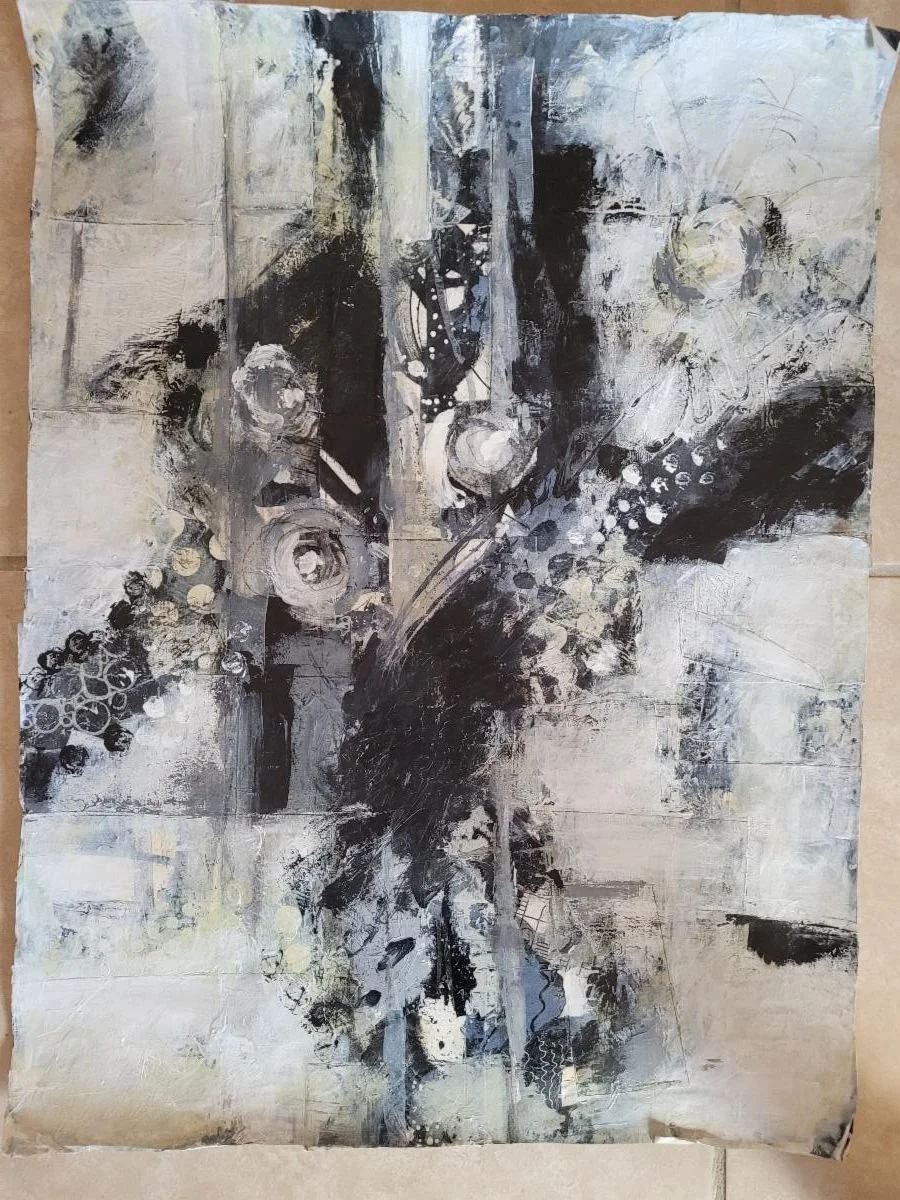 Well, the rest is history. My high school art teacher encouraged me to pursue my interest in art and helped me with my portfolio to apply to the Art Education program at RIC. I spent 30 years as a public school visual art teacher for the Chariho School District. I loved teaching and planning engaging and fun lessons for my students. But it really left no time for my own art. It wasn’t until my retirement that I actively started thinking about what kind of art I wanted to make. I took an abstract painting class at the Visual Arts Center in Punta Gorda, and I was hooked.