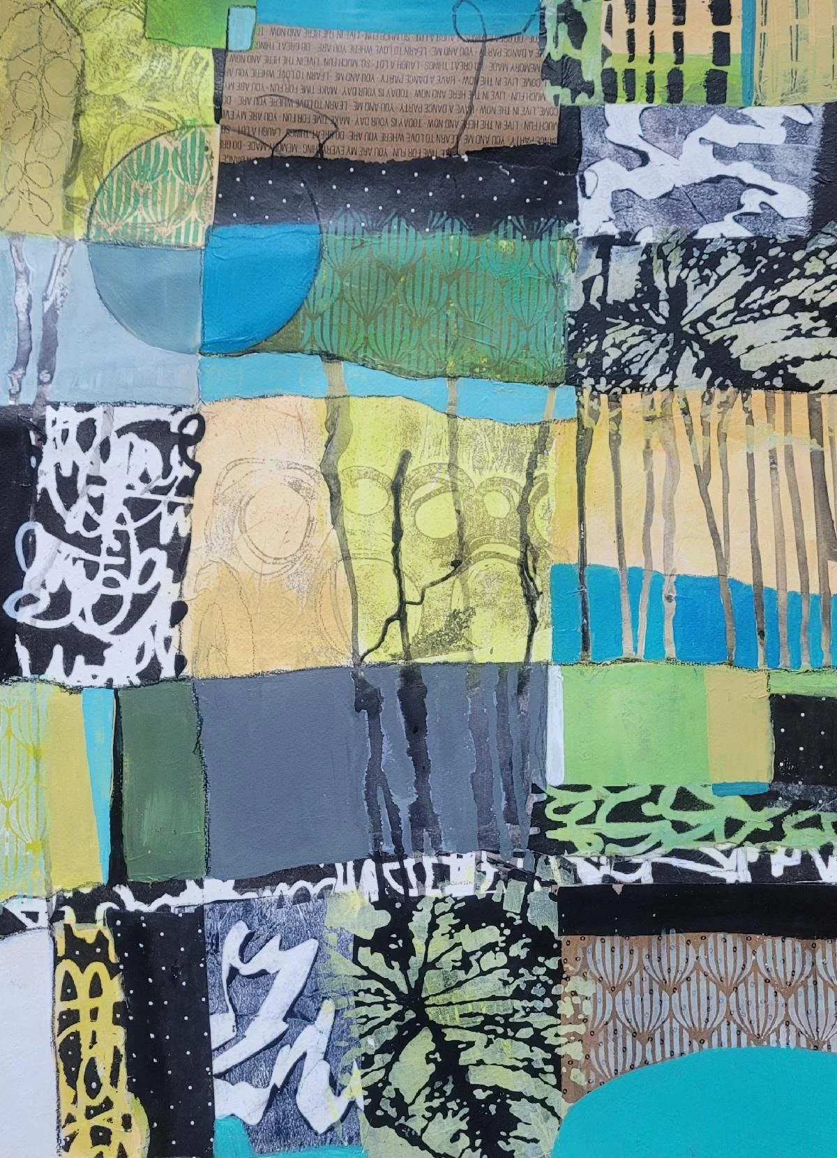 The flora and fauna of living in two beautiful states gives me my inspiration. I enjoy taking notice of the ever changing colors, patterns and textures that surround me everyday and it gives me something to reflect on. Acting intuitively gives me the freedom to explore the many possibilities of creating art. Concentrating on the art making rather than the outcome gives me great freedom. I have learned to trust my instincts, to improve my techniques and hopefully find my voice.