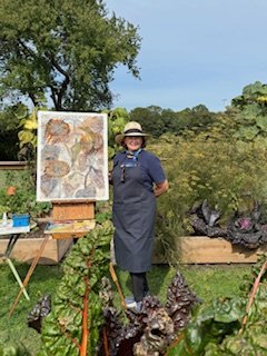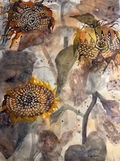 The inspiration for many of my pieces is found outdoors in the fresh air. I truly enjoy painting in my garden or meeting the plein air group, Painting Around, at various locations in Rhode Island. Elinor Thompson and Cindy DiDonato are the leaders of Painting Around and they have both been very generous in sharing their wealth of knowledge about having a creative life with me. I’m currently working on a series of sunflower paintings in my garden. As summer has gone into autumn the flowers have become giant seed heads that are very sculptural.