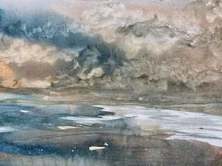 Originally, I’m from Woonsocket and currently live in Wakefield, RI and Wellington, FL. I create works on paper, collages, cyanotypes and watercolors. Watercolor has been my primary focus because I find the medium to be so elusive. I love the way the pigments blend and how they can have transparency or opacity and create a sense of atmosphere on a piece of paper.