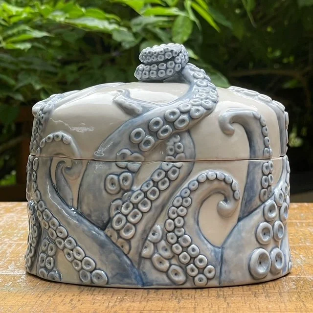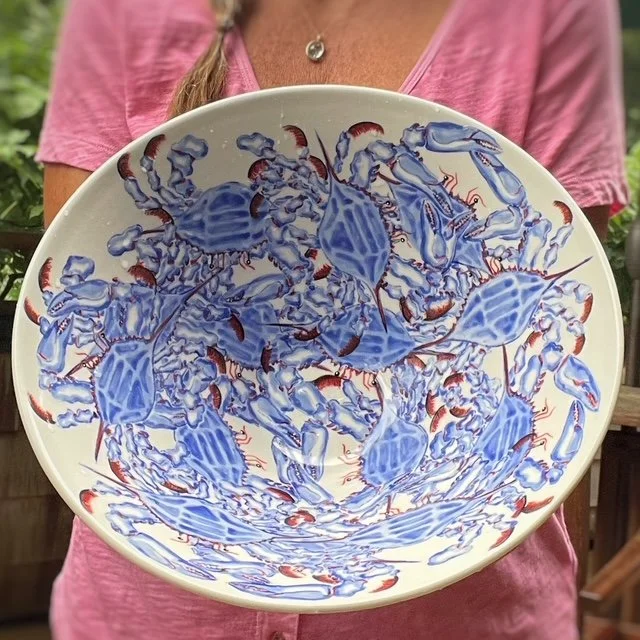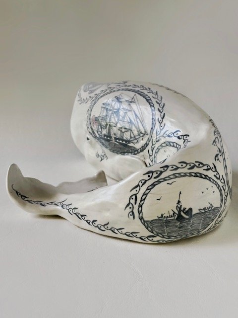 I draw my influence and inspiration from the ocean’s mystique and the rich biodiversity of marine wildlife. The significance of the early shipping and whaling industries and the historical maritime artwork depicting them have a large impact on my work. I’m also drawn to and inspired by antique hand painted pottery from China, Japan, Turkey, etc.