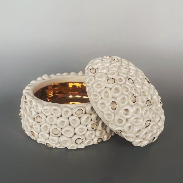My love of drawing at a young age progressed to private oil painting classes and attending RISD’s young artists summer camp a few times. I was blessed to have parents that supported my passion. I was also lucky to then attend a high school with a robust art department including ceramics. I was instantly captivated by the tactile and expressive possibilities, and my love of working with clay began. Although I chose a different path for my career, I have always been able to incorporate some sort of art into my life. While working and raising my two children I would take all kinds of art, ceramic, sewing, or other crafting classes. About 9 years ago I was able to stop working full time and began taking pottery classes at SCAA consistently, eventually becoming a pottery studio member. In 2020, during the height of the pandemic, I created a small pottery studio in my home where I now produce my works.