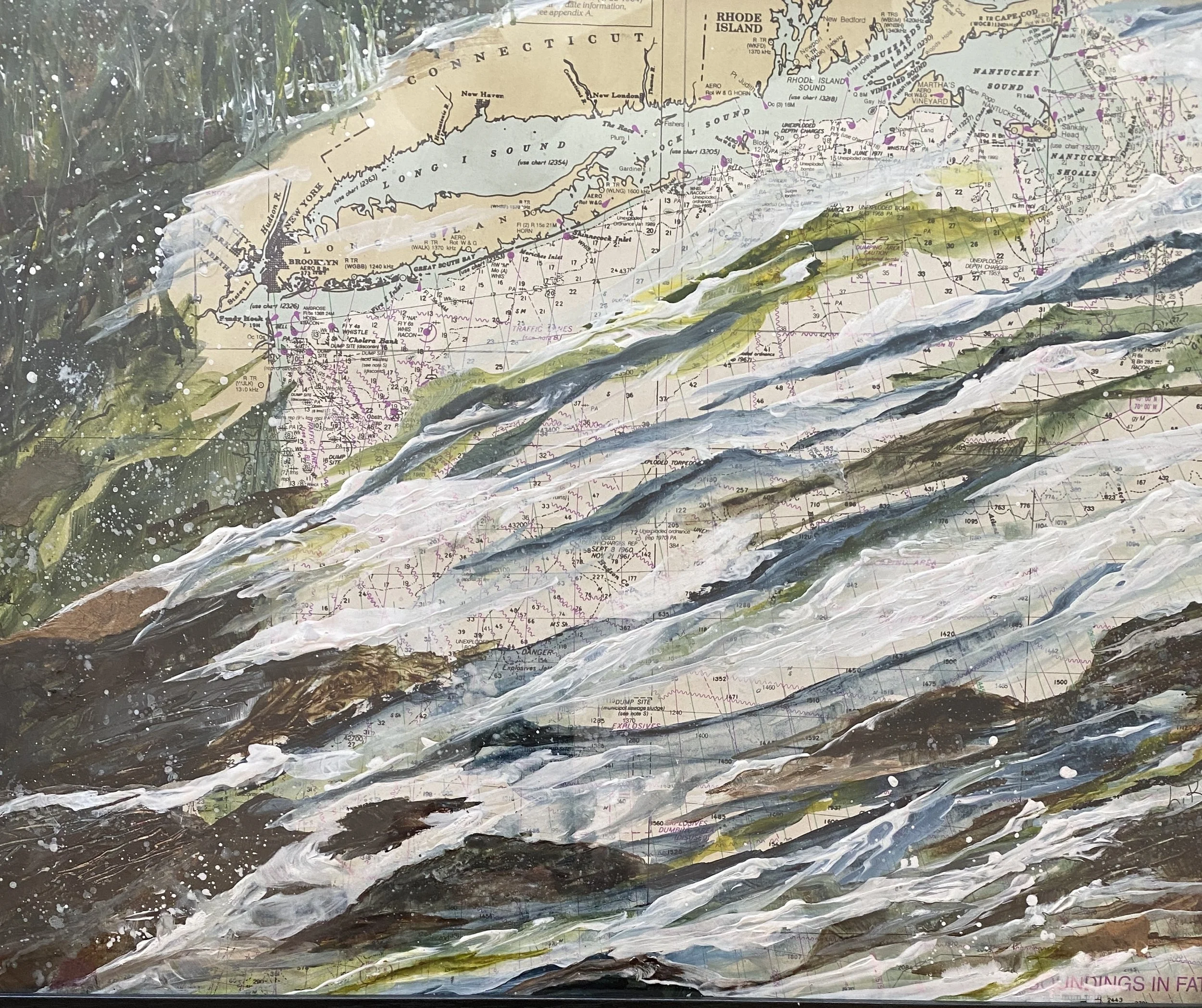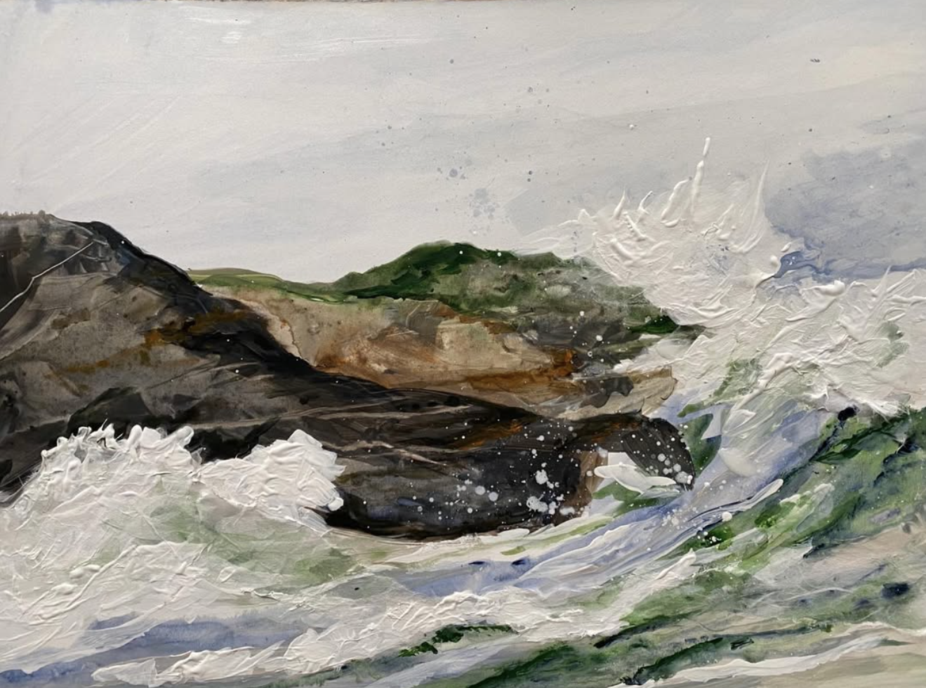 I grew up in Providence, RI. I am a mixed media collage artist. I primarily work with handmade papers, acrylic paint and ink on Illustration board. I also paint in acrylic on canvas. I mainly paint seascapes and abstracts.