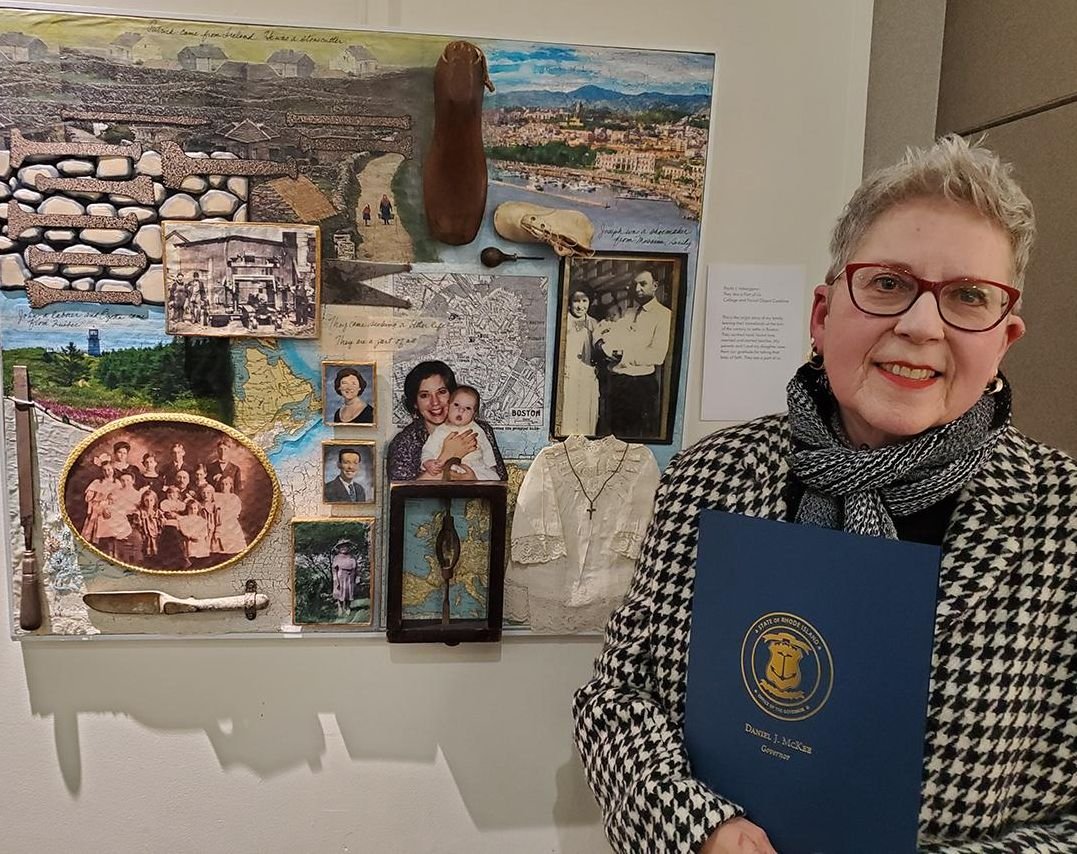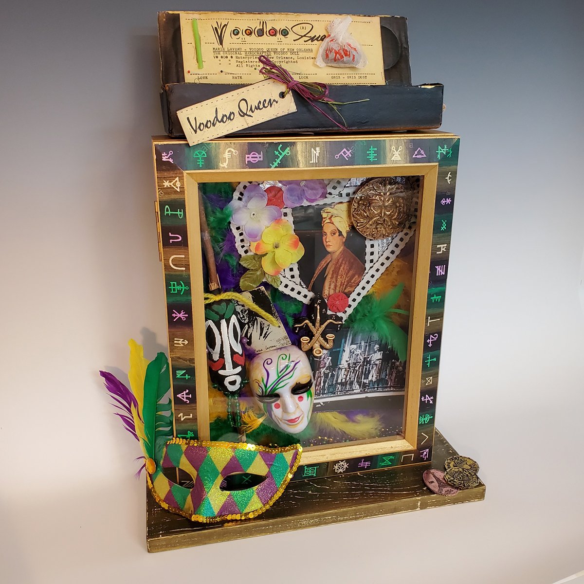 I’m Paula Imbergamo, originally from Boston and Worcester and I live in the village of Matunuck. I am primarily a mixed media assemblage artist. Combining a variety of media and interesting found objects to create 3-dimensional vignettes with the goal of telling a story is an all-consuming passion for me.